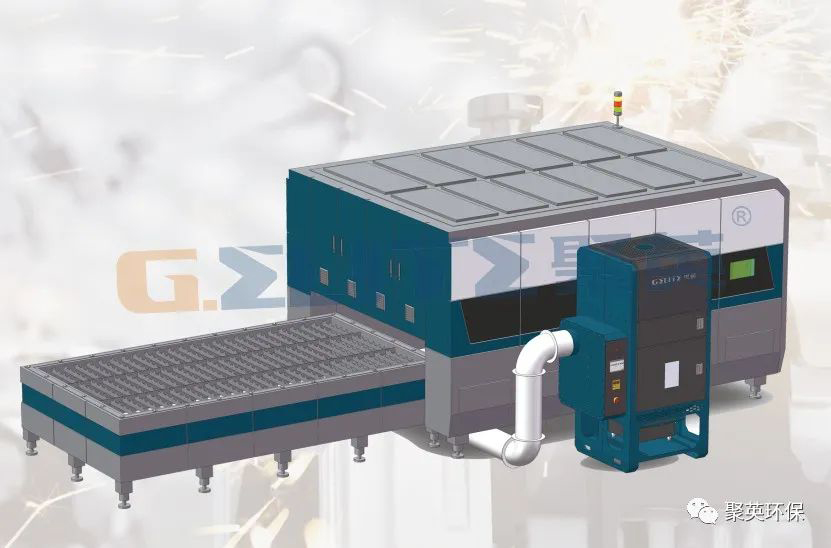 GES系列激光切割煙塵凈化裝置(激光切割煙塵凈化設(shè)備),預(yù)留排煙口一體化對接,通過內(nèi)部風(fēng)門切換,煙塵氣流在風(fēng)機作用下從切割機預(yù)留出風(fēng)口通過管道進入火星捕集器,攔截帶火星大顆粒,粒徑較小的塵埃隨氣流通過高效濾芯,最后經(jīng)由風(fēng)機排出,凈化效率達到99.9%,濾芯表面塵埃聚集,清灰系統(tǒng)啟動,利用分室反吹作用,將濾芯表面堆積煙塵吹落,達到清灰再利用的效果,由此更好解決激光切割煙塵治理難題。